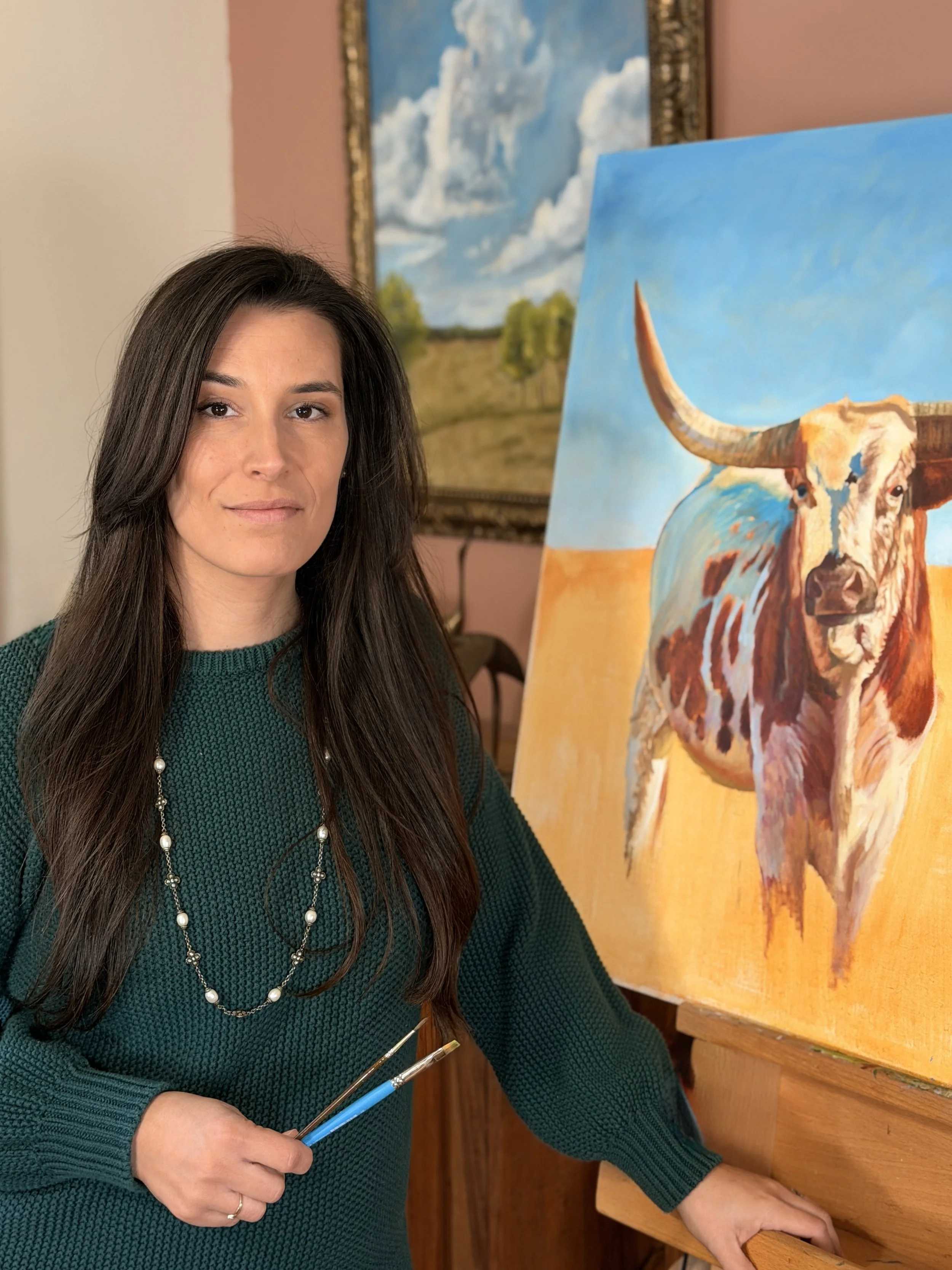 My journey into the arts began unexpectedly. As a high school student, I never saw myself as creative and even tried to drop a required art class. Thankfully, I lost that battle. That single experience sparked a love for painting that quickly grew into a calling. I went on to earn degrees in Studio Art and French from the University of Central Oklahoma, and was honored to serve as Oklahoma City’s first Artist-in-Residence. My work has since been exhibited at the Oklahoma State Capitol and in galleries and festivals throughout the Midwest.